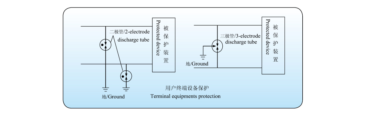气体放电管特别适用于有线电视网络中的同轴电缆保护。由于气体放电管具有很低的自身电容(1pF左右),即使在高频状态下都不会对系统造成干扰。放电管置于保护模块中并与导体外包线连接。