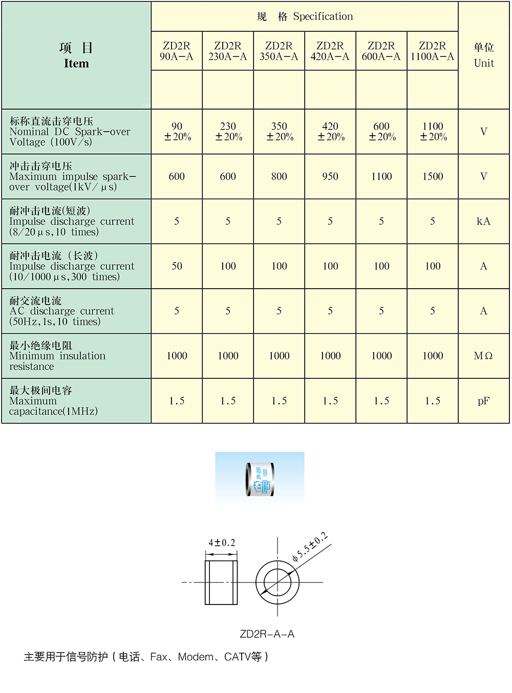 > 陶瓷放电二极管 Φ5.5×4mm