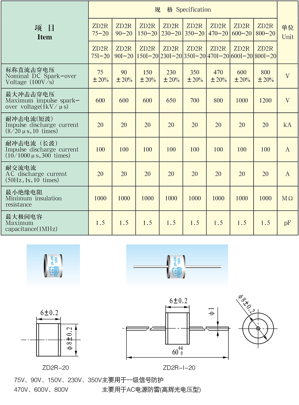> 陶瓷放电二极管 Φ8×6mm 20KA