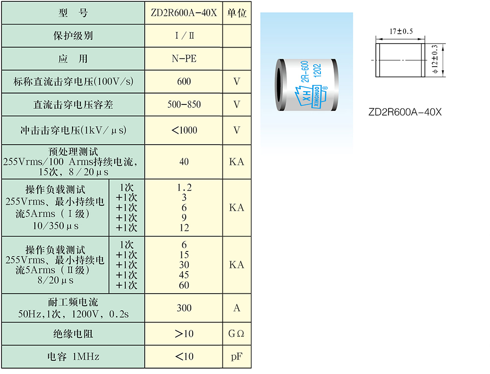 > 陶瓷气体放电二极管(大通流断续流) Φ12×17mm