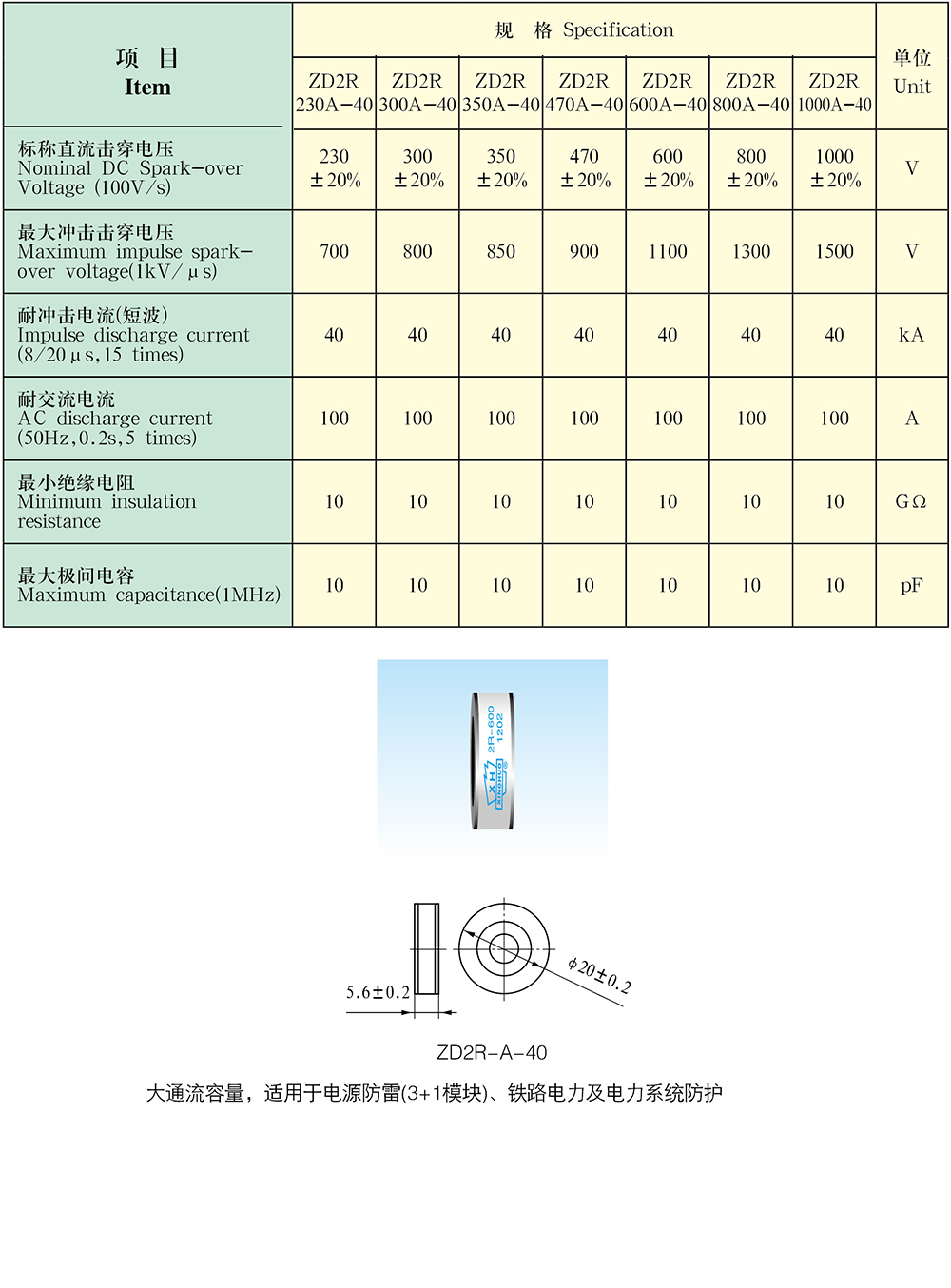 > 大通流陶瓷放电二极管 Φ20×5.6mm