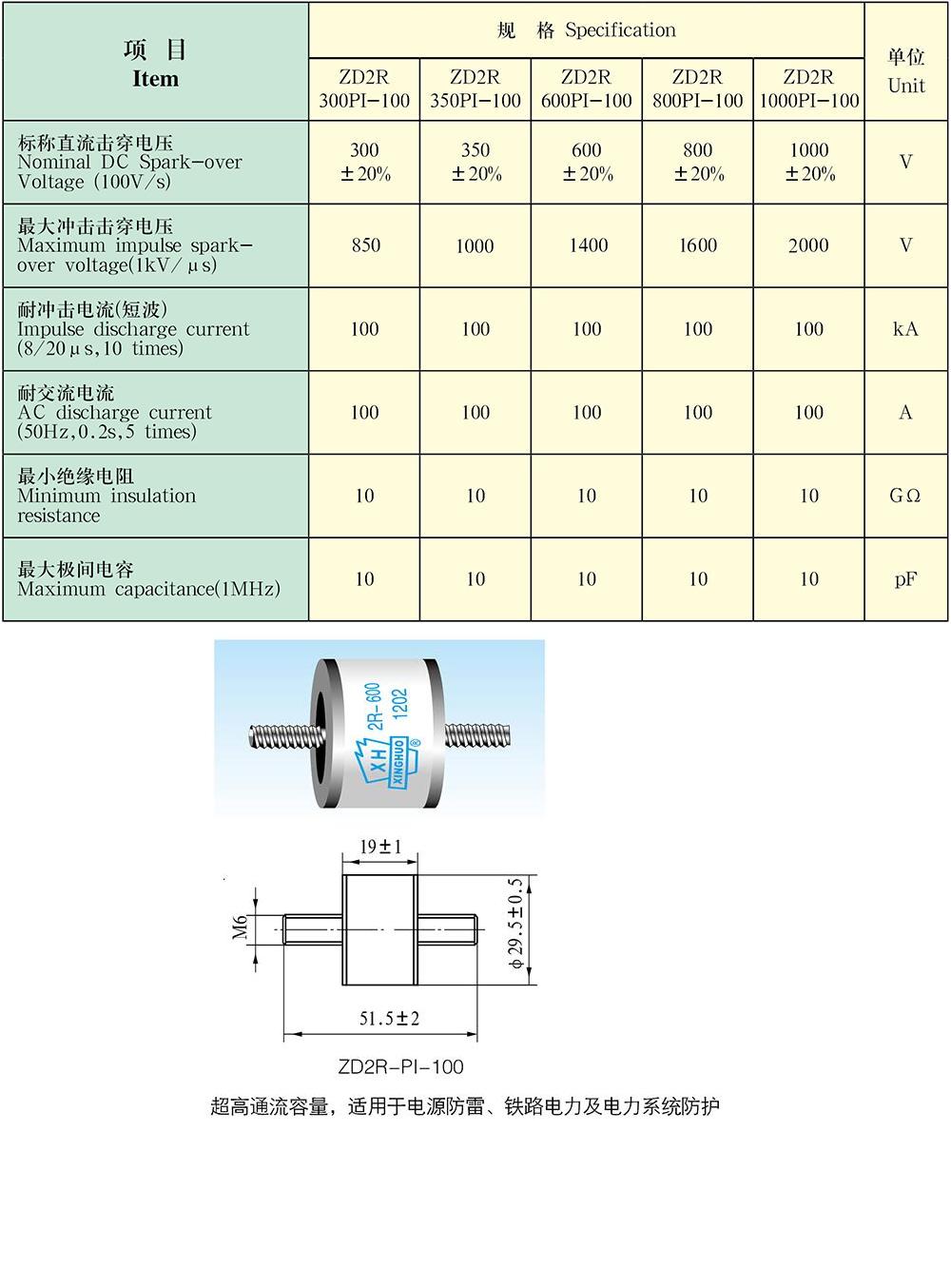 大通流陶瓷放电管