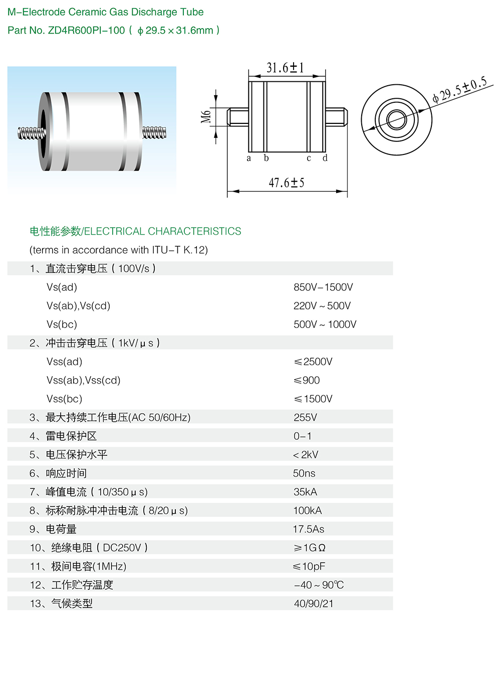 > 多间断断续流陶瓷放电四级管 Φ29.5×31.6mm